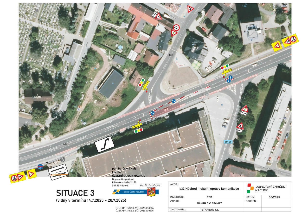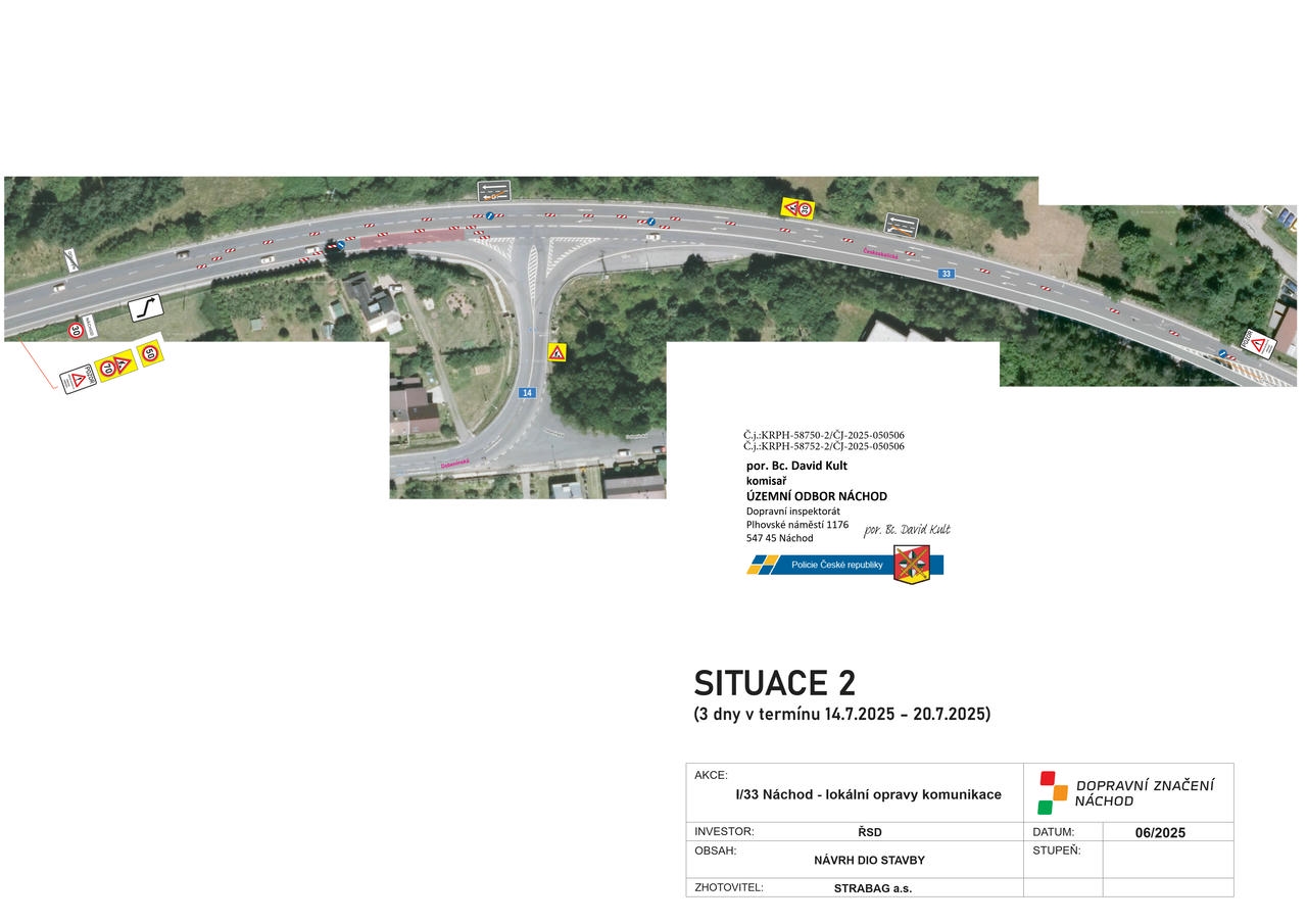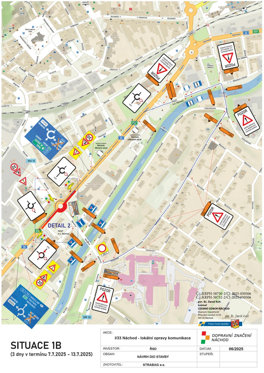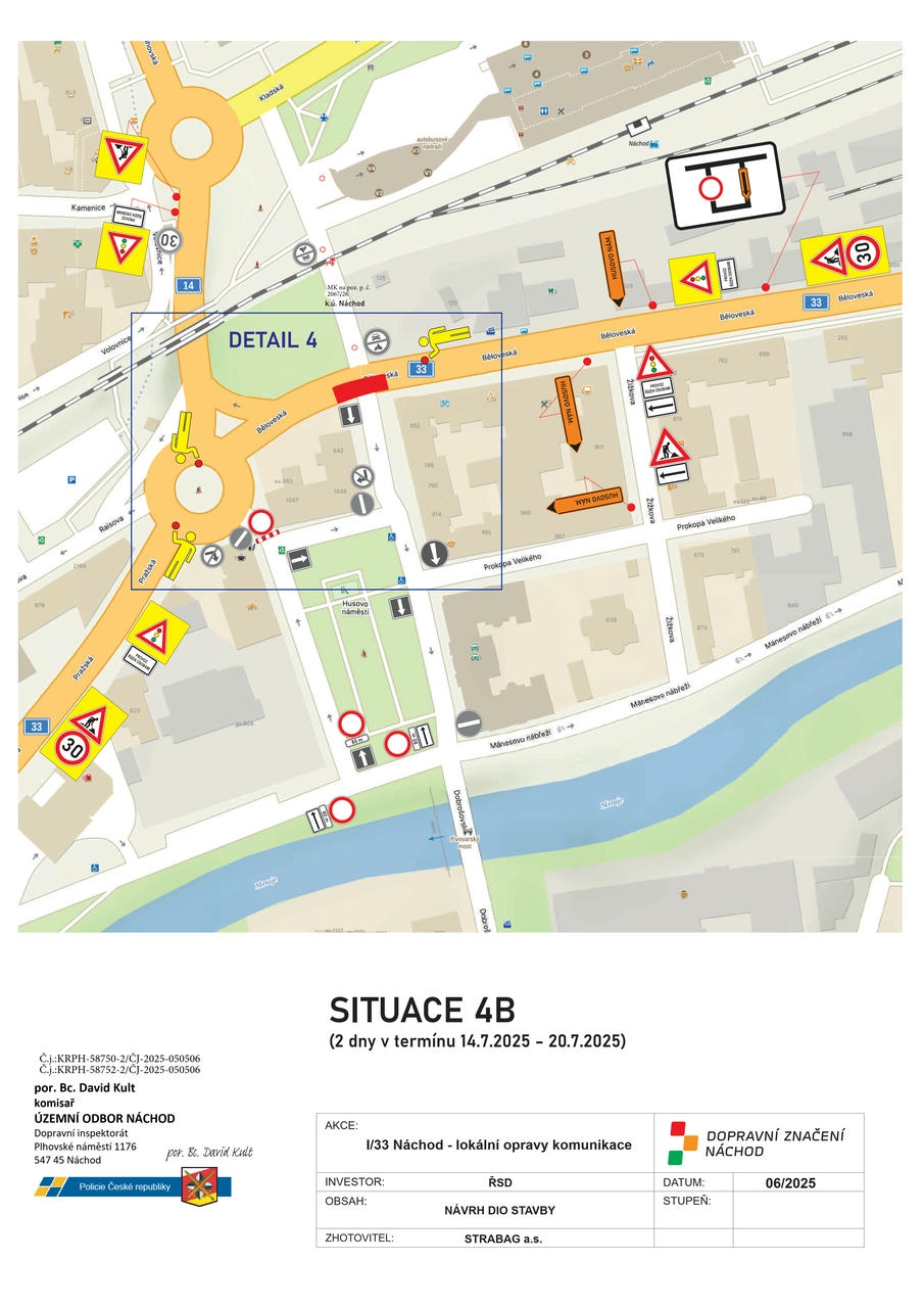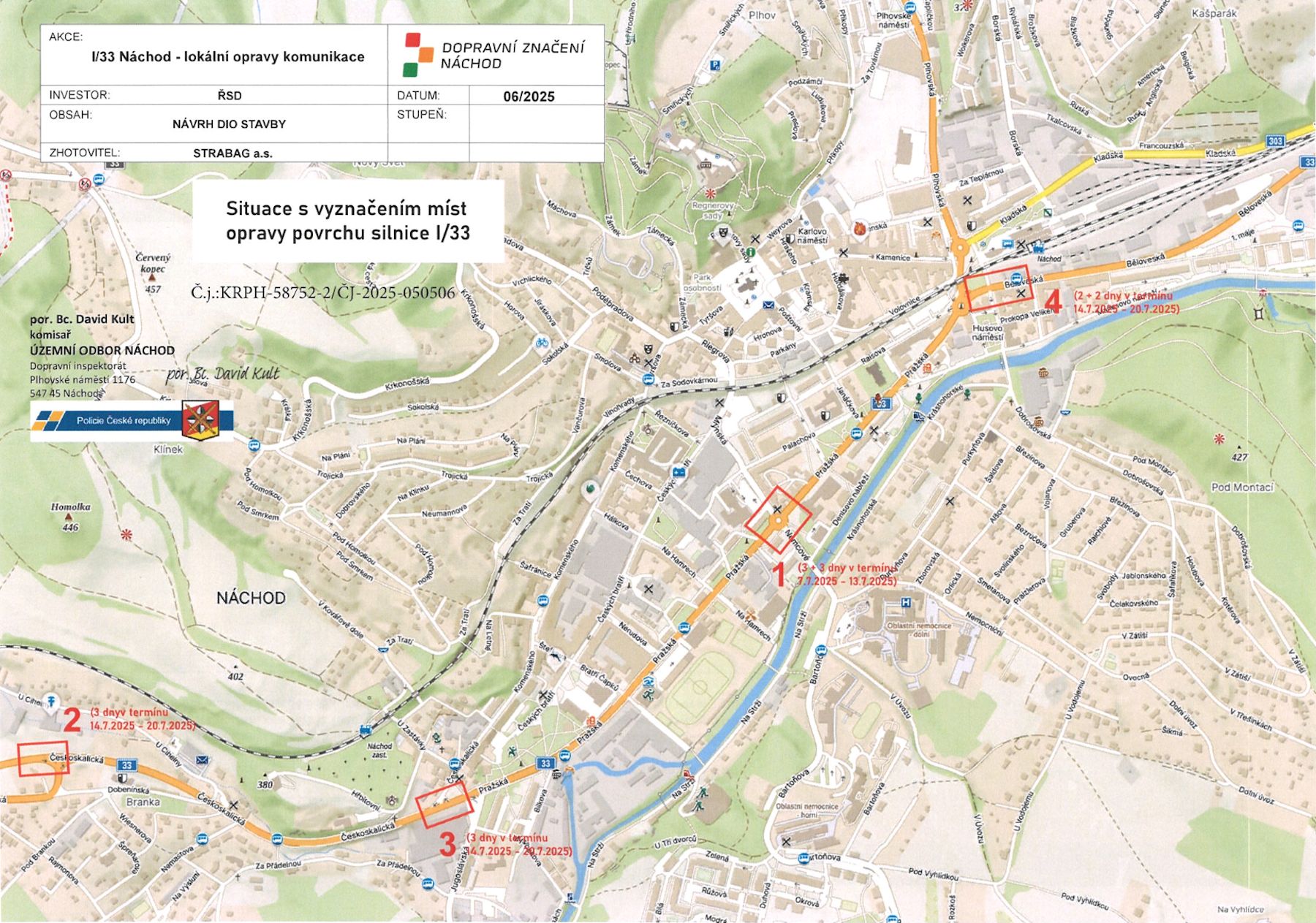 V termínu od 7. do 20. července 2025 dojde v několika ulicích v Náchodě k dopravním omezením z důvodu oprav vozovky na silnici I/33.