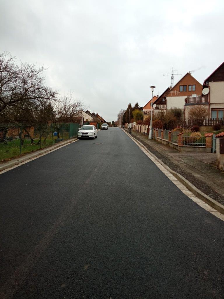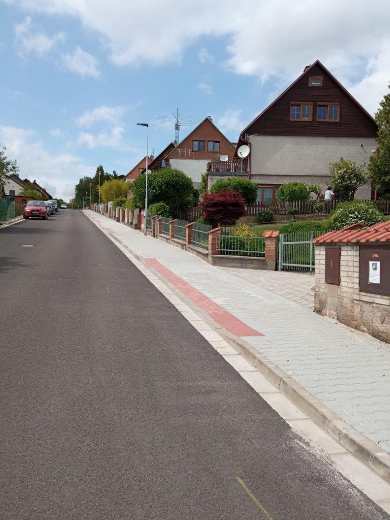 Práce zahrnovaly kompletní výměnu podkladních vrstev a položení nového povrchu. Součástí akce byla také oprava veřejného osvětlení, uložení nových chrániček a kabelů nízkého napětí a chráničky pro budoucí optický kabel.
