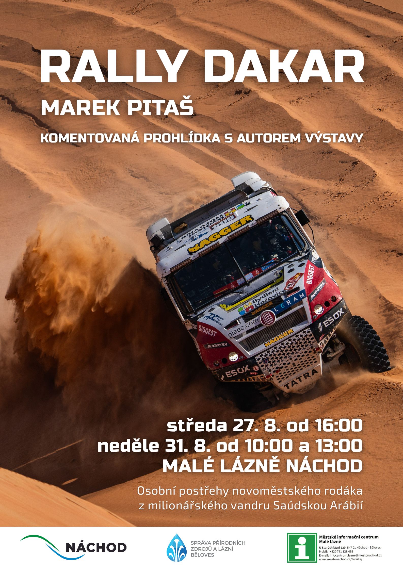 Zveme vás na komentovanou prohlídku výstavy s autorem, fotografem Markem Pitašem, který vás osobně provede svými snímky z legendárního závodu Rally Dakar a podělí se o zážitky z místa dění.