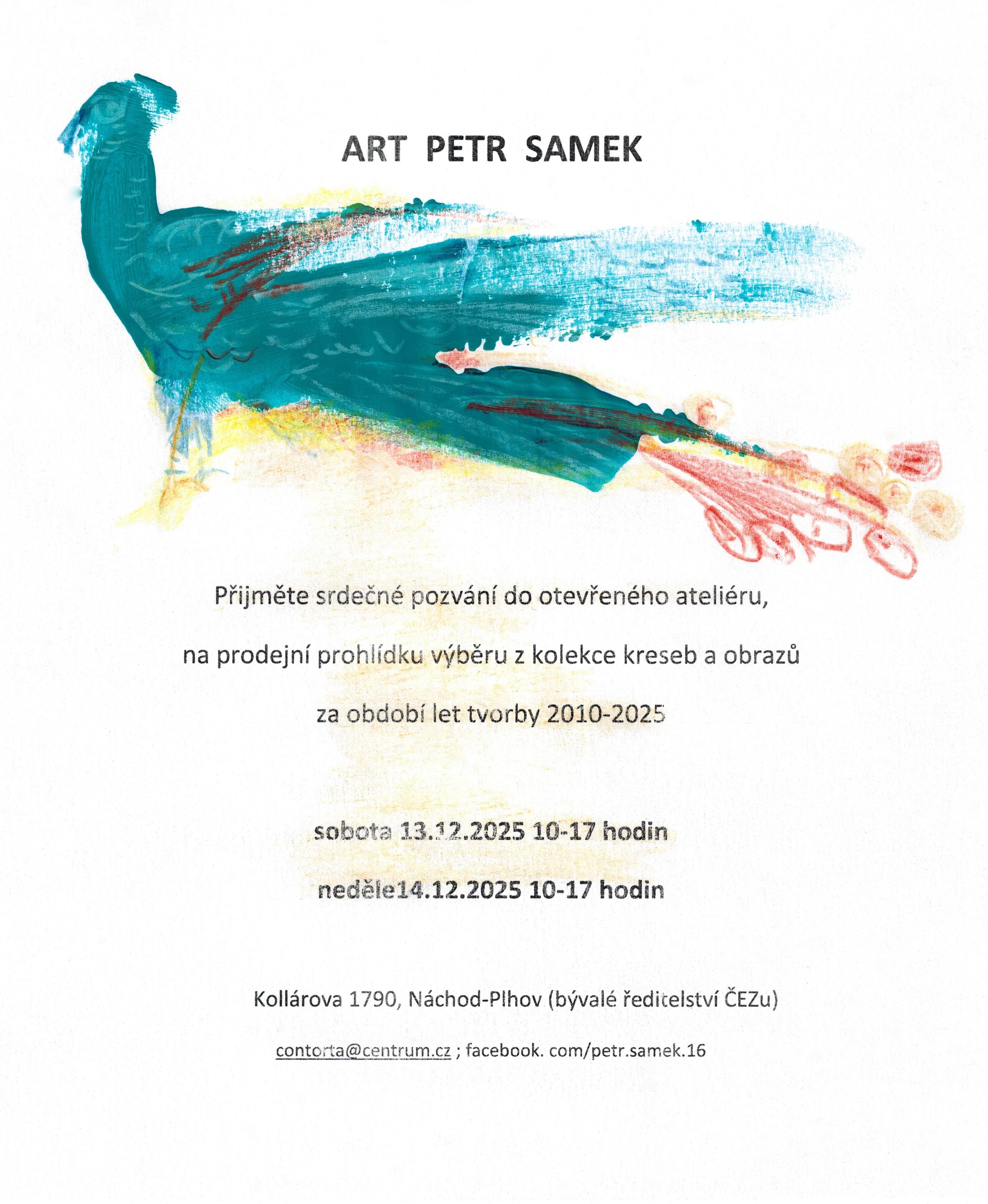 Petr Samek vás srdečně zve ve dnech 13.–14. prosince 2025 na prodejní prohlídku výběru z kolekce kreseb a obrazů za období let tvorby 2010–2025, která bude probíhat od 10 do 17 hodin v ateliéru Petra Samka.