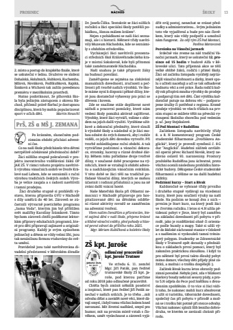PROSINEC %u0160KOLY 13Z%u0160 kpt. Jaro%u0161eodlou%u010den%u00e9 pracovi%u0161t%u011b kpt. Jaro%u0161e TrutnovPr%u0160, Z%u0160 a M%u0160 J. ZEMANA2. m%u00edsto a postup do krajsk%u00e9ho fin%u00e1le, kter%u00e9 se uskute%u010dn%u00ed v lednu. Dru%u017estvo ve slo%u017een%u00ed Dohalsk%u00e1, Holubnich, Hubkov%u00e1, Kuchemba, M%u00edlov%u00e1, Nov%u00e1kov%u00e1, Pod%u0161kubkov%u00e1, Rajsk%u00e1, %u0160imkov%u00e1 a Wichov%u00e1 tak za%u017eilo povedenou premi%u00e9ru v mezi%u0161koln%u00edm prost%u0159ed%u00ed. Nutno podotknout, %u017ee plhovsk%u00e1 %u0161kola byla jedin%u00fdm z%u00e1stupcem z okresu N%u00e1chod, p%u0159i%u010dem%u017e pr%u00e1v%u011b florbal je dostupnou discipl%u00ednou, kter%u00e1 by mohla popularizovat sport v o%u010d%u00edch d%u011bt%u00ed. Martin NeuschlPo kr%u00e1sn%u00e9m, slune%u010dn%u00e9m podzimn%u00edm obdob%u00ed p%u0159ich%u00e1z%u00ed adventn%u00ed %u010das.Co na na%u0161%u00ed %u0161kole p%u0159edch%u00e1zelo t%u00e9to d%u011btmi netrp%u011bliv%u011b o%u010dek%u00e1van%u00e9 p%u0159edv%u00e1no%u010dn%u00ed dob%u011b? %u017d%u00e1ci ni%u017e%u0161%u00edho stupn%u011b pokra%u010dovali v projektu inovativn%u00edho vzd%u011bl%u00e1v%u00e1n%u00ed %u017e%u00e1k%u016f OP JAK Z%u0160. V r%u00e1mci tohoto projektu nav%u0161t%u00edvili v%u00fdrobnu v%u00e1no%u010dn%u00edch ozdob ve Dvo%u0159e Kr%u00e1lov%u00e9 nad Labem, kde se sezn%u00e1mili s ru%u010dn%u00ed v%u00fdrobou tradi%u010dn%u00edch %u010desk%u00fdch ozdob. V%u00fdroba je velice zaujala a s radost%u00ed nav%u0161t%u00edvili i tamn%u00ed prodejnu. %u017d%u00e1ci druh%u00e9ho stupn%u011b si prohl%u00e9dli v%u00fdstavu, kterou p%u0159ipravila GVU v N%u00e1chod%u011b s d%u00edly um%u011blc%u016f do 40 let. Z%u00e1rove%u0148 se z%u00fa%u010dastnili v%u00fdtvarn%u011b poetick%u00e9ho programu %u201eSama Voda%u201c, kter%u00fdm jim byl p%u0159ibl%u00ed%u017een sv%u011bt mal%u00ed%u0159ky Karol%u00edny %u0160r%u00e1mkov%u00e9. T%u00edmto bychom z%u00e1rove%u0148 cht%u011bli pod%u011bkovat lektork%u00e1m p%u0159%u00edpravy eduka%u010dn%u00edch program%u016f, kter%u00e9 pro d%u011bti p%u0159ipravuj%u00ed zaj%u00edmav%u00e9 a origin%u00e1ln%u00ed programy. Ka%u017ed%u00fd je sv%u00fdm zp%u016fsobem jedine%u010dn%u00fd a d%u011btem se v%u017edy velmi l%u00edb%u00ed, jsou tak nen%u00e1silnou formou vtahov%u00e1ny do sv%u011bta um%u011bn%u00ed. Pravideln%u011b jsou tak%u00e9 nav%u0161t%u011bvov%u00e1na divadeln%u00ed p%u0159edstaven%u00ed v M%u011bstsk%u00e9m divadle Dr. Josefa %u010c%u00ed%u017eka. Tentokr%u00e1t se %u017e%u00e1ci ni%u017e%u0161%u00edch ro%u010dn%u00edk%u016f a %u017e%u00e1ci speci%u00e1ln%u00ed %u0161koly pot%u011b%u0161ili poh%u00e1dkou%u201e Honza m%u00e1lem kr%u00e1lem%u201c. Nejen s poh%u00e1dkami se na%u0161i %u017e%u00e1ci seznamuj%u00ed, ale i s histori%u00ed. N%u011bkter%u00e9 t%u0159%u00eddy nav%u0161t%u00edvily Muzeum N%u00e1chodska, kde se sezn%u00e1mily s obdob%u00edm st%u0159edov%u011bku. Vych%u00e1zej%u00edc%u00ed %u017e%u00e1ci nav%u0161t%u00edvili prezentaci st%u0159edn%u00edch %u0161kol Kr%u00e1lov%u00e9hradeck%u00e9ho kraje v m%u00edstn%u00ed Sokolovn%u011b, kde byli p%u0159%u00edtomni tak%u00e9 zam%u011bstnavatel%u00e9 N%u00e1chodska. Na%u0161%u00ed snahou je tak%u00e9 p%u0159ipravit %u017e%u00e1ky na budouc%u00ed povol%u00e1n%u00ed.Zam%u011b%u0159ujeme se zejm%u00e9na na z%u00edsk%u00e1v%u00e1n%u00ed manu%u00e1ln%u00edch dovednost%u00ed, zru%u010dnost%u00ed a pe%u010dlivosti p%u0159i tvorb%u011b na%u0161ich v%u00fdrobk%u016f. Ve %u0161kole m%u00e1me nyn%u00ed k dispozici p%u011bkn%u00e9 d%u00edlny, kter%u00e9 jsou dostate%u010dn%u011b vybaveny pro pr%u00e1ci se d%u0159evem i kovem. Zde se sna%u017e%u00edme st%u00e1le dopl%u0148ovat nov%u00e9 n%u00e1%u0159ad%u00ed a pracovn%u00ed pom%u016fcky, kter%u00e9 n%u00e1m veden%u00ed %u0161koly pom%u00e1h%u00e1 aktivn%u011b zaji%u0161%u0165ovat. V%u00fdrobky, kter%u00e9 %u017e%u00e1ci vytv%u00e1%u0159%u00ed, vol%u00edme s ohledem na jejich dal%u0161%u00ed vyu%u017eit%u00ed. Vyr%u00e1b%u00edme u%u017eitkov%u00e9 a dekora%u010dn%u00ed p%u0159edm%u011bty, kter%u00e9 slou%u017e%u00ed k v%u00fdzdob%u011b %u0161koly a n%u00e1sledn%u011b si je %u017e%u00e1ci mohou odn%u00e9st do sv%u00fdch domov%u016f, aby i rodi%u010de vid%u011bli, co jejich d%u011bti dovedou vytvo%u0159it. P%u0159i tvorb%u011b zohled%u0148ujeme ro%u010dn%u00ed obdob%u00ed. A tak vytv%u00e1%u0159%u00edme podzimn%u00ed a v%u00e1no%u010dn%u00ed dekorace, stromky, lucerny a r%u016fzn%u00e9 drobn%u00e9 d%u00e1rky. B%u011bhem roku po%u0159%u00e1d%u00e1me dvoje tvo%u0159iv%u00e9 d%u00edlny, v sou%u010dasn%u00e9 dob%u011b pracujeme na v%u00fdrobc%u00edch, kter%u00e9 se vztahuj%u00ed k obdob%u00ed adventu a nadch%u00e1zej%u00edc%u00edm v%u00e1no%u010dn%u00edm sv%u00e1tk%u016fm. V t%u00e9to dob%u011b se %u017e%u00e1ci t%u011b%u0161%u00ed na tradi%u010dn%u011b po%u0159%u00e1dan%u00e9 V%u00e1no%u010dn%u00ed d%u00edlny, kter%u00fdch se mohou %u00fa%u010dastnit i rodinn%u00ed p%u0159%u00edslu%u0161n%u00edci a jsou na n%u011b zv%u00e1ni dal%u0161%u00ed vz%u00e1cn%u00ed host%u00e9. Na%u0161e Mate%u0159sk%u00e1 %u0161kola p%u0159i Oblastn%u00ed nemocnici v N%u00e1chod%u011b p%u0159ipravuje pro hospitalizovan%u00e9 d%u011bti na d%u011btsk%u00e9m odd%u011blen%u00ed r%u016fzn%u00e9 aktivity rovn%u011b%u017e se zam%u011b%u0159en%u00edm na adventn%u00ed tvo%u0159en%u00ed. V%u0161em na%u0161im %u010dten%u00e1%u0159%u016fm a p%u0159%u00edznivc%u016fm, kter%u00e9 zaj%u00edm%u00e1 d%u011bn%u00ed v na%u0161%u00ed %u0161kole, p%u0159ejeme kr%u00e1sn%u00e9 a klidn%u00e9 v%u00e1no%u010dn%u00ed sv%u00e1tky, pln%u00e9 pohody a hlavn%u011b pevn%u00e9 zdrav%u00ed do p%u0159%u00ed%u0161t%u00edho roku 2025.Mgr. Miriam Kub%u00ed%u010dkov%u00e1 a kolektiv %u0161kolyd%u0159it sv%u016fj postoj, nenechat se sv%u00e1zat p%u0159edsudky a administrativou... Sv%u00fdm jedn%u00e1n%u00edm toto v%u0161e vyjad%u0159oval a bude pro n%u00e1s %u010dlov%u011bkem, kter%u00fd n%u00e1s v%u017edy podpo%u0159il a umo%u017enil 