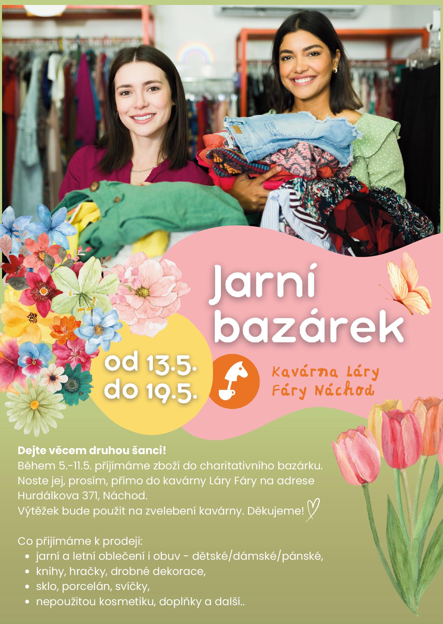 Zveme vás na jarní bazárek, který se uskuteční ce dnech 13.–19. května v Kavárně Láry Fáry.