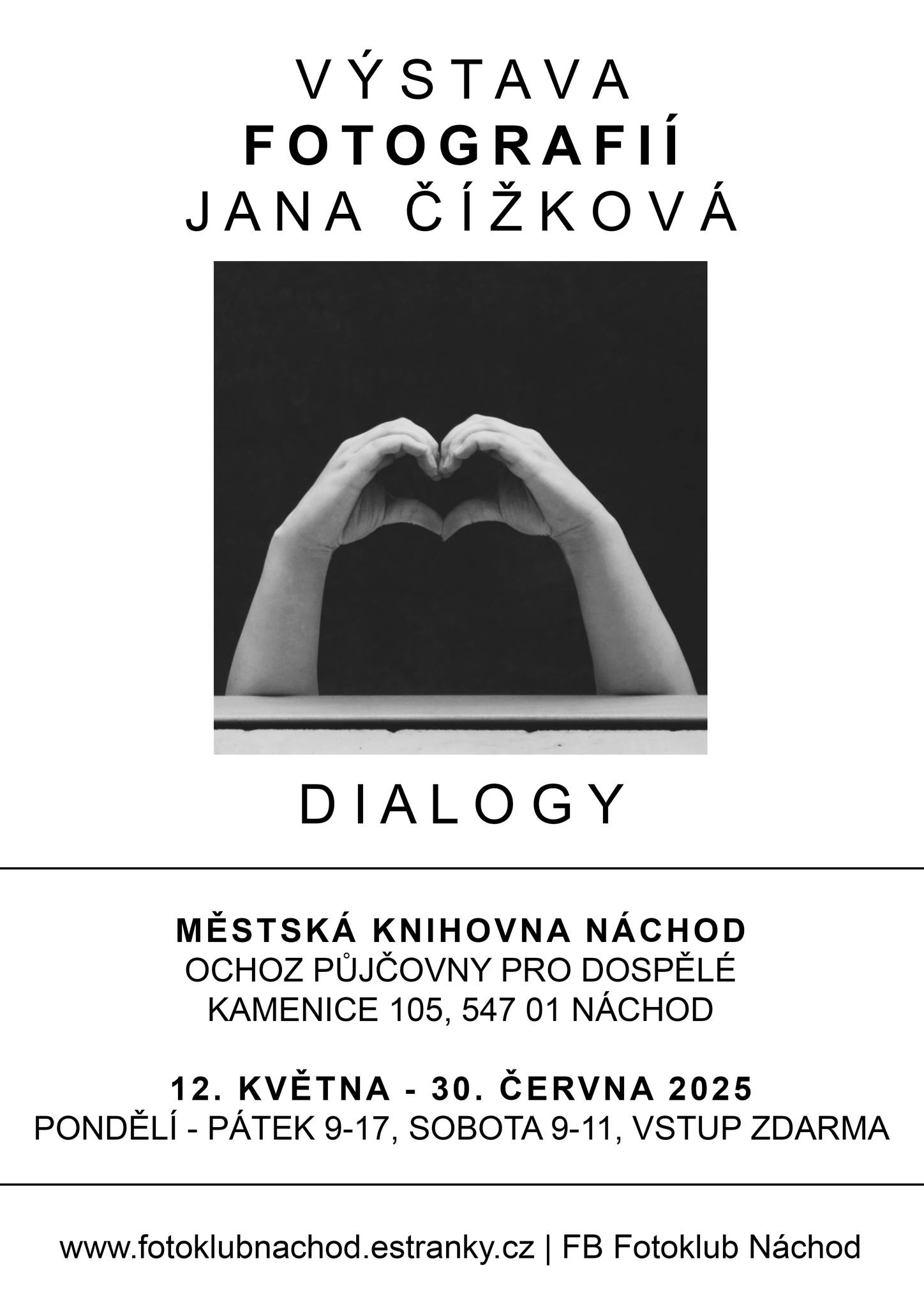 Fotoklub Náchod vás zve na autorskou výstavu fotografií Jany Čížkové, která bude k vidění ve dnech 12. 5.–30. 6. 2025 v Městské knihovně Náchod, v ochozu půjčovny pro dospělé.