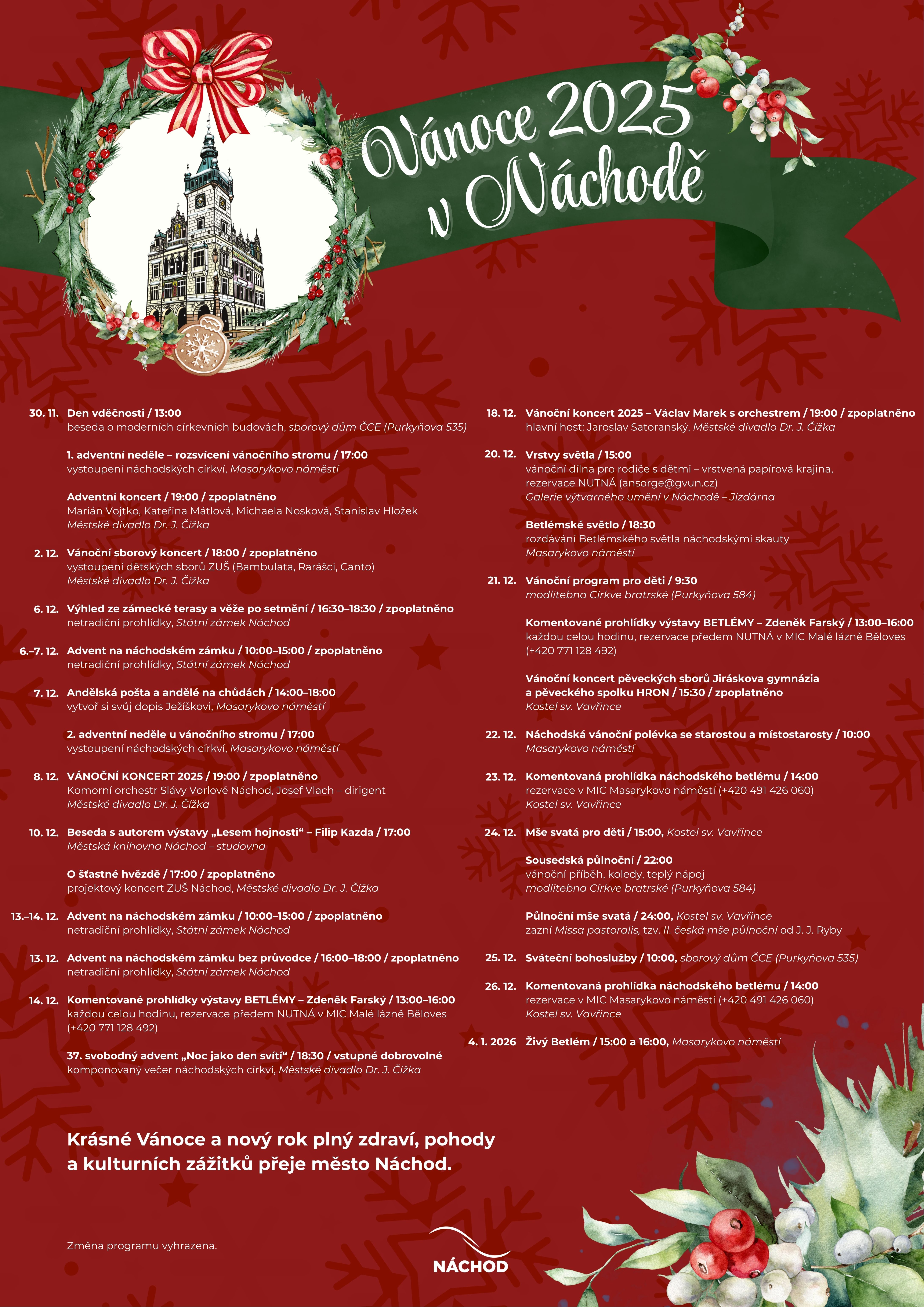 Město Náchod vás srdečně zve na prosincové dny plné kulturních akcí.