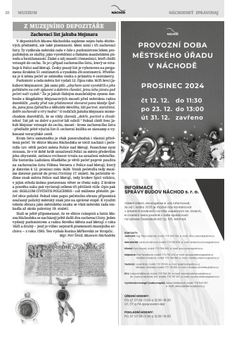 20 MUZEUM N%u00c1CHODSK%u00dd ZPRAVODAJZachovac%u00ed list Jakuba MejsnaraZ MUZEJN%u00cdHO DEPOZIT%u00c1%u0158EV depozit%u00e1%u0159%u00edch Muzea N%u00e1chodska najdeme nejen %u0159adu sb%u00edrkov%u00fdch p%u0159edm%u011bt%u016f, ale tak%u00e9 p%u00edsemnost%u00ed. Mezi nimi i t%u0159i zachovac%u00ed listy. Ty vyd%u00e1vala m%u011bstsk%u00e1 rada v %u010dele s purkmistrem lidem propu%u0161t%u011bn%u00fdm ze slu%u017eby, jako vysv%u011bd%u010den%u00ed o %u0159%u00e1dn%u00e9m man%u017eelsk%u00e9m p%u016fvodu a bez%u00fahonnosti. %u017d%u00e1dat o n%u011bj museli i %u0159emesln%u00edci, kte%u0159%u00ed cht%u011bli vstoupit do cechu. To je i p%u0159%u00edpad zachovac%u00edho listu, kter%u00fd se vztahuje k Polici nad Metuj%u00ed. %u010cesky psan%u00fd list je vyhotoven na pergamenu %u0161irok%u00e9m 51 centimetr%u016f a vysok%u00e9m 29 centimetr%u016f. P%u0159iv%u011b%u0161ena je k n%u011bmu pe%u010de%u0165 ze zelen%u00e9ho vosku o pr%u016fm%u011bru 4 centimetry. Purkmistr a rada m%u011bsta list vydali 12. %u0159%u00edjna roku 1635 %u0161evci Jakubovi Mejsnarovi. Jak sami p%u00ed%u0161%u00ed: %u201eabychom sami vysv%u011bd%u010dili o jeho po%u0159%u00e1dn%u00e9m na sv%u011bt zplozen%u00ed a dobr%u00e9m chov%u00e1n%u00ed. Jemu toho jistotu pod pe%u010det%u00ed na%u0161%u00ed vydali.%u201c %u017de je Jakub %u0159%u00e1dn%u00fdm man%u017eelsk%u00fdm synem Ambro%u017ee a Magdal%u00e9ny Mejsnarov%u00fdch museli p%u0159ed m%u011bstskou radou dosv%u011bd%u010dit %u201eosoby p%u0159ed n%u00e1s p%u0159edstaven%u00e9 slovutn%u00e9 pana Mat%u011bje %u0160peldu, pana Jana Zp%u011bv%u00e1%u010dka a Mikul%u00e1%u0161e Men%u0161%u00edka, lidi poctiv%u00e9, staro%u017eitn%u00e9, dob%u0159e zachoval%u00e9 a v%u00edry hodn%u00e9.%u201c O rodi%u010d%u00edch Jakuba Mejsnara mimochodem dosv%u011bd%u010dili, %u017ee se v%u017edy chovali %u201edob%u0159e, poctiv%u011b a chvalitebn%u011b. Tak jak na dobr%u00e9 a poctiv%u00e9 lidi n%u00e1le%u017e%u00ed.%u201c Pokud cht%u011bl %u0161vec Jakub Mejsnar vstoupit do cechu, musel - krom zachovac%u00edho listu - p%u0159edlo%u017eit je%u0161t%u011b v%u00fdu%u010dn%u00ed list %u010di cechovn%u00ed kn%u00ed%u017eku se z%u00e1znamy o vykonan%u00e9 tovary%u0161sk%u00e9 cest%u011b. Krom listu samotn%u00e9ho je v%u0161ak pozoruhodn%u00e1 i vlastn%u00ed p%u0159iv%u011b%u0161en%u00e1 pe%u010de%u0165. Ve sb%u00edrce Muzea N%u00e1chodska se toti%u017e nach%u00e1z%u00ed i pe%u010detidlo tzv. v%u011bt%u0161%u00ed pe%u010deti m%u011bsta Police nad Metuj%u00ed. Ponechme nyn%u00ed stranou, %u017ee v t%u00e9 dob%u011b hrd%u011b ozna%u010dovali Polici za m%u011bsto p%u0159edev%u0161%u00edm jeho obyvatel%u00e9, zat%u00edmco vrchnost trvala na ozna%u010den%u00ed m%u011bste%u010dko. Dle historika Ladislava Hladk%u00e9ho je v%u011bt%u0161%u00ed pe%u010de%u0165 poprv%u00e9 pou%u017eita na zachovac%u00edm listu Vil%u00e9ma Vernera z Police nad Metuj%u00ed, kter%u00fd je datov%u00e1n k 12. prosinci roku 1629. Vznik pe%u010detidla tedy mus%u00edme datovat patrn%u011b do prvn%u00ed %u010dtvrtiny 17. stolet%u00ed. Na pe%u010detidle vid%u00edme znak m%u011bsta Police nad Matuj%u00ed, tedy krokev %u0161pic%u00ed vzh%u016fru, v jej%u00edm st%u0159edu kolmo postavenou v%u011btev se t%u0159emi suky. Z krokve a prav%u00e9ho suku pak vyr%u016fstaj%u00ed celkem t%u0159i p%u011btilist%u00e9 r%u016f%u017ee. Opis pak zn%u00ed: SIGILLUM CIVITATIS POLICENSIS - co%u017e m%u016f%u017eeme p%u0159elo%u017eit: pe%u010de%u0165 obce polick%u00e9. Pokud v%u00e1m popis pe%u010detn%u00edho obrazu p%u0159ipom%u00edn%u00e1 sou%u010dasn%u00fd polick%u00fd m%u011bstsk%u00fd znak jste na spr%u00e1vn%u00e9 stop%u011b. K vyu%u017eit%u00ed tohoto obrazu jako m%u011bstsk%u00e9ho znaku se v%u0161ak m%u011bstsk%u00e1 rada rozhodla a%u017e okolo poloviny 19. stolet%u00ed. Slu%u0161%u00ed se je%u0161t%u011b p%u0159ipomenout, %u017ee ve sb%u00edrce rukopis%u016f a listin Muzea N%u00e1chodska se nach%u00e1zej%u00ed je%u0161t%u011b dal%u0161%u00ed dva zachovac%u00ed listy. Jeden vydan%u00fd purkmistrem a radou Nov%u00e9ho M%u011bsta nad Metuj%u00ed z roku 1625 a druh%u00fd %u2013 jen%u017e je v%u016fbec nejstar%u0161%u00ed p%u00edsemnost%u00ed muzejn%u00edho archivu %u2013 z roku 1593. Ten vydala Rozina Mi%u0159kovsk%u00e1 ze Strop%u010dic.Mgr. Petr %u0160m%u00edd, Muzeum N%u00e1chodska