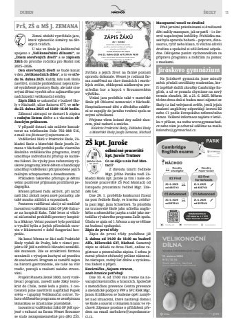 DUBEN %u0160KOLY 11Jir%u00e1skovo gymn%u00e1ziumPr%u0160, Z%u0160 a M%u0160 J. ZEMANAZimn%u00ed obdob%u00ed vyst%u0159%u00eddalo jaro, kter%u00e9 vykouzlilo %u00fasm%u011bvy na d%u011btsk%u00fdch tv%u00e1%u0159%u00edch.U n%u00e1s ve %u0161kole je ka%u017edoro%u010dn%u011b spojeno s %u201eVelikono%u010dn%u00edmi d%u00edlnami%u201c, se%u201eDnem otev%u0159en%u00fdch dve%u0159%u00ed%u201c a se z%u00e1pisem %u017e%u00e1k%u016f do prvn%u00edho ro%u010dn%u00edku pro %u0161koln%u00ed rok 2025%u20132026.Den otev%u0159en%u00fdch dve%u0159%u00ed se bude konat v den %u201eVelikono%u010dn%u00edch d%u00edlen%u201c, a to ve st%u0159edu 16. dubna 2025. Ka%u017ed%u00fd, kdo na%u0161i %u0161kolu nav%u0161t%u00edv%u00ed, si m%u016f%u017ee prohl%u00e9dnout nejen kr%u00e1sn%u011b vyzdoben%u00e9 prostory %u0161koly, ale tak%u00e9 si se sv%u00fdmi d%u011btmi vyrobit n%u011bco zaj%u00edmav%u00e9ho pro nadch%u00e1zej%u00edc%u00ed velikono%u010dn%u00ed sv%u00e1tky.Z%u00e1pis %u017e%u00e1k%u016f se uskute%u010dn%u00ed v budov%u011b %u0161koly v N%u00e1chod%u011b, ulice Raisova 677, ve st%u0159edu 23. dubna 2025 od 13.00%u201316.00 hodin.Z%u00e1konn%u00ed z%u00e1stupci se dostav%u00ed k z%u00e1pisu s rodn%u00fdm listem d%u00edt%u011bte a s vlastn%u00edm ob%u010dansk%u00fdm pr%u016fkazem. V p%u0159%u00edpad%u011b dotaz%u016f n%u00e1s m%u016f%u017eete kontaktovat na telefonn%u00edm %u010d%u00edsle 702 088 516, e-mail: ivo.feistauer@zsjzemana.cz.Vzd%u011bl%u00e1v%u00e1n%u00ed %u017e%u00e1k%u016f v Praktick%u00e9 %u0161kole, Z%u00e1kladn%u00ed %u0161kole a Mate%u0159sk%u00e9 %u0161kole Josefa Zemana v N%u00e1chod%u011b prob%u00edh%u00e1 podle vlastn%u00edho %u0161koln%u00edho vzd%u011bl%u00e1vac%u00edho programu, kter%u00fd umo%u017e%u0148uje individu%u00e1ln%u00ed p%u0159%u00edstup ke ka%u017ed%u00e9mu %u017e%u00e1kovi. Do v%u00fduky jsou za%u0159azov%u00e1ny v%u00fdukov%u00e9 programy, kter%u00e9 d%u011btem s handicapy umo%u017e%u0148uj%u00ed vzd%u011bl%u00e1v%u00e1n%u00ed p%u0159izp%u016fsoben%u00e9 jejich re%u00e1ln%u00fdm schopnostem a dovednostem. P%u0159%u00edkladem takov%u00e9ho p%u0159%u00edstupu je d%u011btmi velmi pozitivn%u011b p%u0159ij%u00edman%u00e1 pro%u017eitkov%u00e1 pedagogika. B%u0159ezen p%u0159inesl %u0159adu aktivit, p%u0159i nich%u017e na%u0161i %u017e%u00e1ci z%u00edskali nejen nov%u00e9 poznatky, ale tak%u00e9 mnoho z%u00e1%u017eitk%u016f a vzpom%u00ednek.Poutavou vzd%u011bl%u00e1vac%u00ed akc%u00ed je u%u017e tradi%u010dn%u011b Inovativn%u00ed vzd%u011bl%u00e1v%u00e1n%u00ed %u017e%u00e1k%u016f OP JAK- Exkurze na hospit%u00e1l Kuks. Tak%u00e9 letos si v%u0161ichni z%u00fa%u010dastn%u011bn%u00ed prohl%u00e9dli prostory hospit%u00e1lu a l%u00e9k%u00e1rny. Velmi poutav%u00e9 bylo pov%u00edd%u00e1n%u00ed o vyu%u017eit%u00ed bylin a jin%u00fdch p%u0159%u00edrodn%u00edch surovin v l%u00e9k%u00e1renstv%u00ed v dob%u011b fungov%u00e1n%u00ed hospit%u00e1lu.Na konci b%u0159ezna se %u017e%u00e1ci na%u0161%u00ed Praktick%u00e9 %u0161koly vydali do Prahy, kde v r%u00e1mci projektu OP JAK nav%u0161t%u00edvili N%u00e1rodn%u00ed zem%u011bd%u011blsk%u00e9 muzeum. Zde se atraktivn%u00ed formou sezn%u00e1mili s v%u00fdvojem kuchyn%u00ed od prav%u011bku do sou%u010dasnosti. Program se zam%u011b%u0159il nejen na historii gastronomie, ale tak%u00e9 na vliv tradic, postoj%u016f a znalost%u00ed na%u0161eho stravov%u00e1n%u00ed.Projekt Planeta Zem%u011b 3000, nov%u00fd vzd%u011bl%u00e1vac%u00ed program, zavedl na%u0161e %u017e%u00e1ky tentokr%u00e1t do Chile, zem%u011b ledu a p%u00edsku. S cestovateli jsme nav%u0161t%u00edvili nap%u0159%u00edklad Pupek sv%u011bta %u2013 tajupln%u00fd Velikono%u010dn%u00ed ostrov. Tohoto obl%u00edben%u00e9ho programu se zem%u011bpisnou t%u00e9matikou se %u00fa%u010dastn%u00edme pravideln%u011b.Inovativn%u00ed vzd%u011bl%u00e1v%u00e1n%u00ed %u017e%u00e1k%u016f OP JAK spojen%u00e9 s exkurz%u00ed na farmu Wenet Broumov se stalo nezapomenuteln%u00e9 pro d%u011bti Z%u0160S. Zv%u00ed%u0159ata a jejich %u017eivot na farm%u011b poznali opravdu dokonale. Wenet je rodinn%u00e1 farma zam%u011b%u0159en%u00e1 na chov dom%u00e1c%u00edch i exotick%u00fdch zv%u00ed%u0159at, obklopen%u00e1 n%u00e1dhern%u00fdm prost%u0159ed%u00edm hor a kopc%u016f v Broumovsk%u00e9m v%u00fdb%u011b%u017eku. V%u00edt%u00e1n%u00ed jara prob%u011bhlo tak%u00e9 v mate%u0159sk%u00e9 %u0161kole p%u0159i Oblastn%u00ed nemocnici v N%u00e1chod%u011b. Hospitalizovan%u00e9 d%u011bti z d%u011btsk%u00e9ho odd%u011blen%u00ed se zapojily do jarn%u00edho tvo%u0159en%u00ed spolu se sv%u00fdmi u%u010ditelkami.P%u0159ejeme v%u0161em kr%u00e1sn%u00e9 dny zalit%u00e9 sluncem, pln%u00e9 radost%u00ed a sm%u00edchu.Kolektiv Praktick%u00e9 %u0161koly, Z%u00e1kladn%u00ed %u0161koly a Mate%u0159sk%u00e9 %u0161koly Josefa Zemana, N%u00e1chodCo se d%u011bje u n%u00e1s Pod Montac%u00ed?Z d%u016fvodu %u00famrt%u00ed %u0159editele Mgr. Ji%u0159%u00edho Pat%u00e1ka vedl Z%u00e1kladn%u00ed %u0161kolu kpt. Jaro%u0161e (a t%u00edm i na%u0161e odlou%u010den%u00e9 pracovi%u0161t%u011b Z%u0160 Pod Montac%u00ed) od listopadu prozatimn%u00ed %u0159editel Mgr. Zden%u011bk G%u00e9c.Dne 29. 1. prob%u011bhlo konkursn%u00ed %u0159%u00edzen%u00ed na post %u0159editele %u0161koly, ve kter%u00e9m zv%u00edt%u011bzila pan%u00ed Mgr. Jana Schierlov%u00e1. Ta p%u016fsobila na trutnovsk%u00e9 %u0161kole jako u%u010ditelka anglick%u00e9ho a n%u011bmeck%u00e9ho jazyka a tak%u00e9 jako metodi%u010dka v%u00fdukov%u00e9ho programu Za%u010d%u00edt spolu. %u00da%u0159adu se ujala od 1. b%u0159ezna a my se t%u011b%u0161%u00edme na budouc%u00ed spolupr%u00e1ci.Z%u00e1pis do prvn%u00ed t%u0159%u00eddyZ%u00e1pis do prvn%u00ed t%u0159%u00eddy prob%u011bhne ji%u017e 3. dubna od 14.00 do 18.00 na budov%u011b Alfa, B%u011blovesk%u00e1 637, N%u00e1chod. Samotn%u00fd z%u00e1pis se skl%u00e1d%u00e1 ze dvou %u010d%u00e1st%u00ed, online registrace a prezen%u010dn%u00edho z%u00e1pisu. S sebou je nutn%u00e9 p%u0159in%u00e9st ob%u010dansk%u00fd pr%u016fkaz z%u00e1konn%u00e9ho z%u00e1stupce, rodn