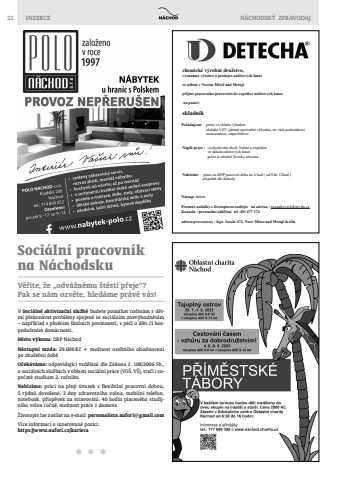 22 N%u00c1CHODSK%u00dd ZPRAVODAJ* * *INZERCEchemick%u00e9 v%u00fdrobn%u00ed dru%u017estvo, v%u00fdznamn%u00fd v%u00fdrobce a prodejce n%u00e1t%u011brov%u00fdch hmotse s%u00eddlem v Nov%u00e9m M%u011bst%u011b nad Metuj%u00edp%u0159ijme pracovn%u00edka/pracovnici do expedice n%u00e1t%u011brov%u00fdch hmotna pozici: skladn%u00edkPo%u017eadujeme : praxe ve skladu v%u00fdhodouobsluha VZV (platn%u00e9 opr%u00e1vn%u011bn%u00ed v%u00fdhodou, ne v%u0161ak podm%u00ednkou)samostatnost, odpov%u011bdnostN%u00e1pl%u0148 pr%u00e1ce : vychyst%u00e1v%u00e1n%u00ed zbo%u017e%u00ed, balen%u00ed a expediceve skladu n%u00e1t%u011brov%u00fdch hmotpr%u00e1ce je st%u0159edn%u011b fyzicky n%u00e1ro%u010dn%u00e1Nab%u00edz%u00edme : pr%u00e1ce na DPP pracovn%u00ed doba na 4 hod ( od 8 do 12hod )p%u0159%u00edpadn%u011b dle dohodyN%u00e1stup: duben P%u00edsemn%u00e9 nab%u00eddky s %u017eivotopisem zas%u00edlejte na adresu : rusnakova@detecha.czKontakt : person%u00e1ln%u00ed odd%u011blen%u00ed tel: 491 477 174adresa provozovny : Kpt. Jaro%u0161e 472, Nov%u00e9 M%u011bsto nad Metuj%u00ed-Kr%u010d%u00ednV%u011b%u0159%u00edte, %u017ee %u201eodv%u00e1%u017en%u00e9mu %u0161t%u011bst%u00ed p%u0159eje%u201c?Pak se n%u00e1m ozv%u011bte, hled%u00e1me pr%u00e1v%u011b v%u00e1s! V Soci%u00e1ln%u011b aktiviza%u010dn%u00ed slu%u017eb%u011b budete pom%u00e1hat rodin%u00e1m s d%u011btmi p%u0159ekon%u00e1vat probl%u00e9my spojen%u00e9 se soci%u00e1ln%u00edm znev%u00fdhodn%u011bn%u00edm %u2013 nap%u0159%u00edklad s pln%u011bn%u00edm %u0161koln%u00edch povinnost%u00ed, s p%u00e9%u010d%u00ed o d%u011bti %u010di hospoda%u0159en%u00edm dom%u00e1cnosti. M%u00edsto v%u00fdkonu: ORP N%u00e1chodN%u00e1stupn%u00ed mzda: 29.000 K%u010d + mo%u017enost osobn%u00edho ohodnocen%u00ed po zku%u0161ebn%u00ed dob%u011bO%u010dek%u00e1v%u00e1me: odpov%u00eddaj%u00edc%u00ed vzd%u011bl%u00e1n%u00ed dle Z%u00e1kona %u010d. 108/2006 Sb., o soci%u00e1ln%u00edch slu%u017eb%u00e1ch v oblasti soci%u00e1ln%u00ed pr%u00e1ce (VO%u0160, V%u0160), sta%u010d%u00ed i zapo%u010dat%u00e9 studium 2. ro%u010dn%u00edku Nab%u00edz%u00edme: pr%u00e1ci na pln%u00fd %u00favazek s flexibiln%u00ed pracovn%u00ed dobou, 5 t%u00fddn%u016f dovolen%u00e9, 3 dny zdravotn%u00edho volna, mobiln%u00ed telefon, notebook, p%u0159%u00edsp%u011bvek na stravov%u00e1n%u00ed, 40 hodin placen%u00e9ho studijn%u00edho volna ro%u010dn%u011b, mo%u017enost pr%u00e1ce z domova%u017divotopis lze zas%u00edlat na e-mail: personalista.aufori@gmail.comV%u00edce informac%u00ed o inzerovan%u00e9 pozici: https://www.aufori.cz/kariera Soci%u00e1ln%u00ed pracovn%u00edk na N%u00e1chodsku